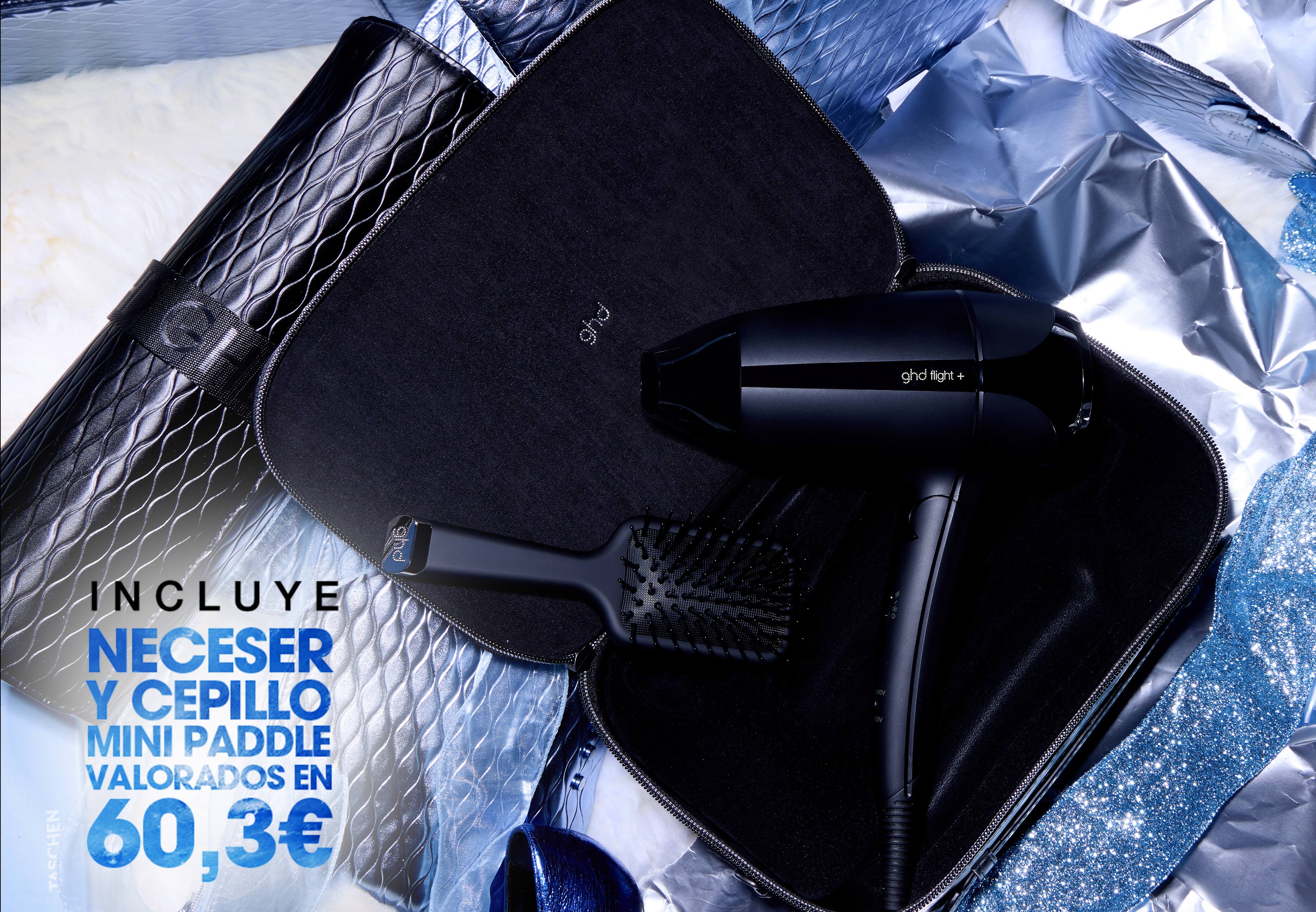 Pack de Secador ghd flight+ No dejes que los viajes te impidan descubrir un good hair day con el set de regalo ghd flight+. Este gift set de edición limitada incluye un neceser de viaje y un cepillo ghd mini paddle, lo que permite llevartelo vayas donde vayas y no dejar de lucir el peinado perfecto.